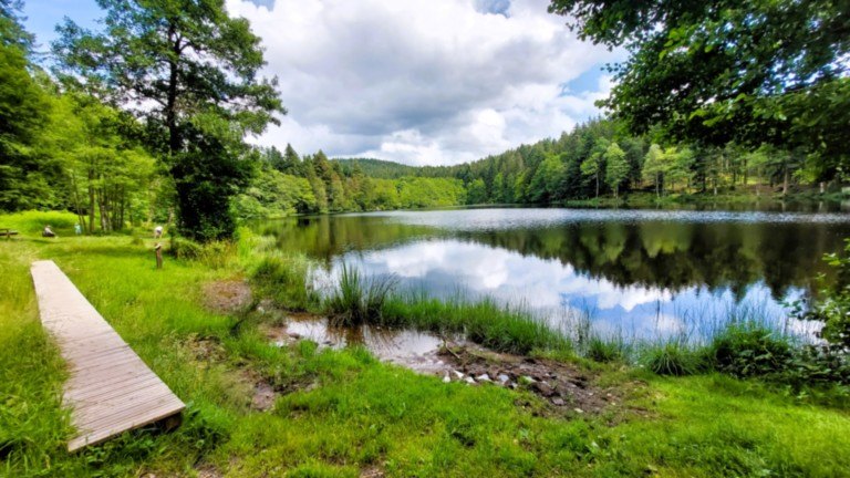 Nous étions 22 personnes pour faire le tour du lac de Gérardmer. En prenant le sentier par la forêt, nous avons de la fraîcheur en cette journée bien ensoleillée, où beaucoup de personnes profitent de cette eau calme et propre pour se baigner tout au long du lac. C'est un avant-goût de l'été et le lancement de la période estivale, les pédalos, les planches à voile, les bateaux sont de sortie.